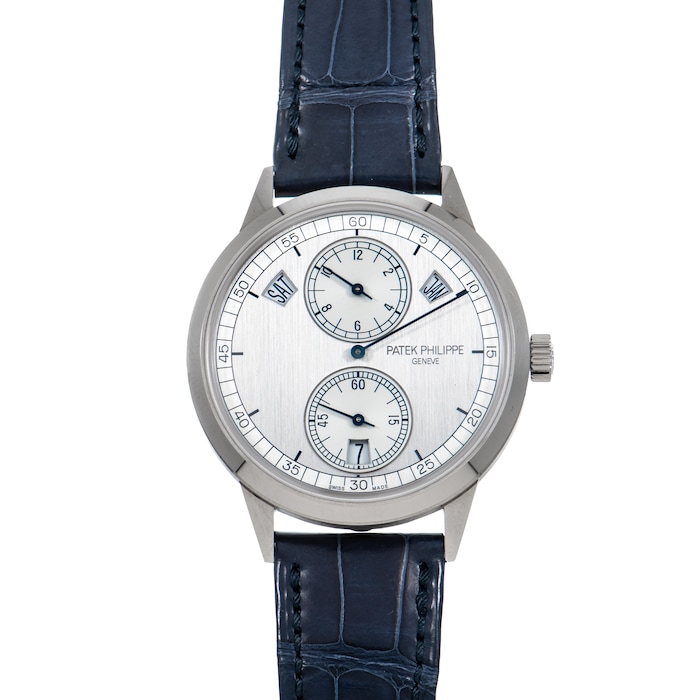 Powered by the impressive Patek Philippe Calibre 31-260 REG QA automatic micro-rotor movement and paired to a signed, blue alligator leather strap with an 18K white gold, signed pin buckle, this stunning calendar watch is proof of Patek’s continued mastery of complicated watchmaking.